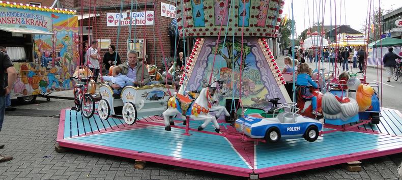 | Uiteraard ontbrak de nostalgische kermis -met o.a. een schiettent, de "rups", draaimolens en diverse andere attracties niet. |
