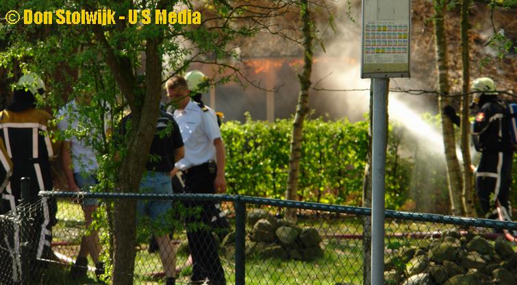Bij aankomst was het dak al grotendeels van binnenuit door de vlammen aangetast. Het was duidelijk, dat het pand niet te redden zou zijn.