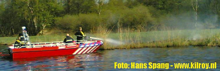 Giethoorn: rietbrand geblust vanuit brandweerboot