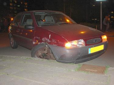 Die stond zo stevig in de grond, dat de wagen er meer dan een meter hoog tegen op reed.