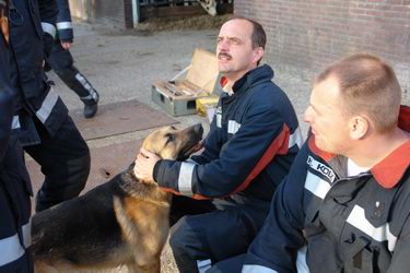 De hond van de boer liep enthousiast van de ene bezoeker na de andere, op zoek naar aandacht van -bij voorkeur- brandweerlieden.