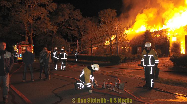De brandweer voorkwam, dat het vuur oversloeg naar naastgelegen panden, waarvan er veel rietgedekt zijn. Niemand raakte gewond.