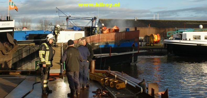 | Vanmorgen heeft er een korte, maar felle brand gewoed in de machinekamer van een binnenvaartschip, dat bij Scheepswerf Geertman lag voor reparatie.