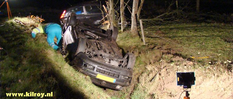 | Hij en een tweede inzittende (leeftijd en woonplaats onbekend) raakten gewond en werden in een ziekenhuis in Groningen opgenomen. In verband met vermoed alcohol- en drugsgebruik is van de bestuurder bloed afgenomen. De man zei in een eerste verklaring, dat hij was uitgeweken voor een tegenligger. De politie is met een onderzoek naar de toedracht bezig. |