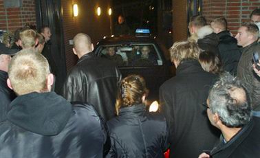 Alle taxi's, die het complex op de Markt verlieten, werden door de mensenmenigte bestormd, omdat men dacht, dat van der Sloot hierin de benen wilde nemen.