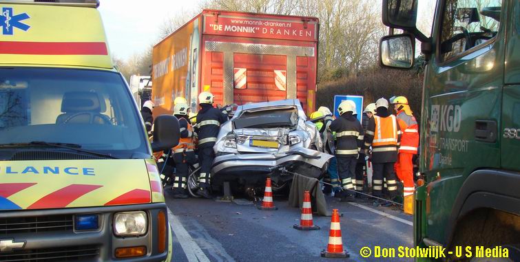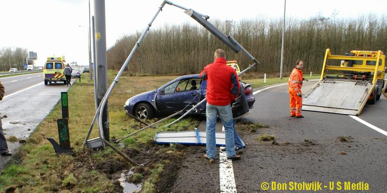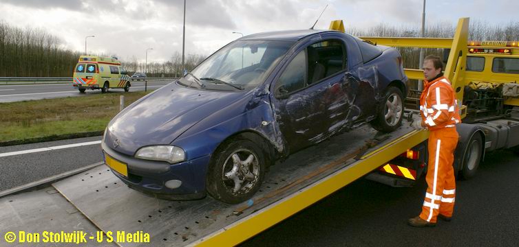 Omdat er hier geen politie aanwezig was, moest de berger hier enige tijd wachten op een wagen van Rijkswaterstaat.