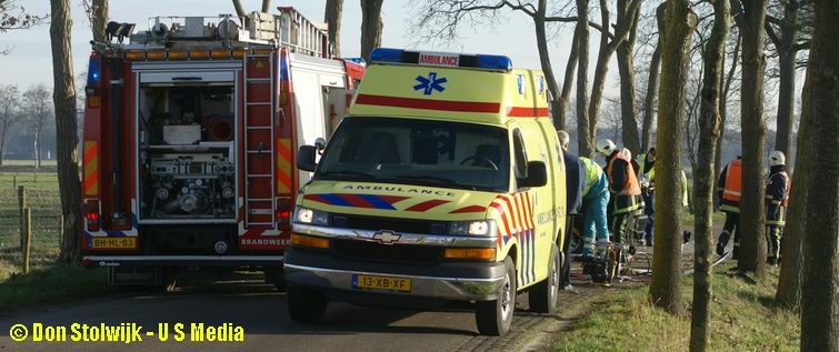 Ook de "Dennis-boys" kwamen vandaag in actie in verband met een verkeersongeval - in hun geval op de Elperstraat bij Schoonloo.