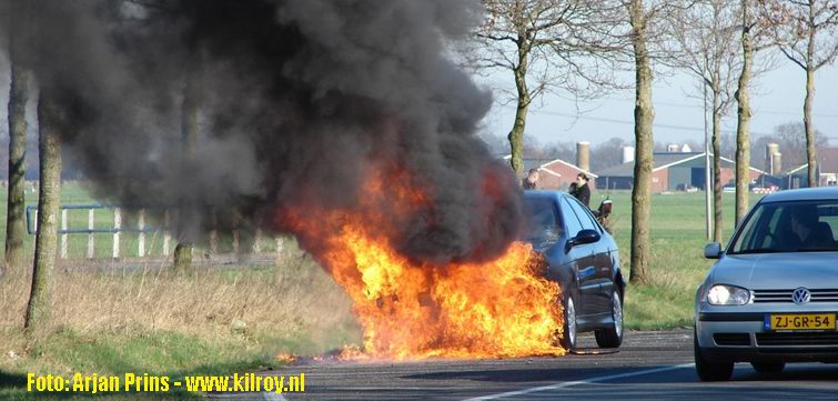 Men wist het vuur snel te doven, maar dat nam niet weg, dat de auto al volledig leeggebrand was.