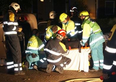 Een automobilist is vanavond tegen achten op de Zwartendijk in Kampen tegen een boom gereden. De man, die letsel aan zijn hoofd had, moest voorzichtig uit zijn voertuig worden gehaald. Hiervoor werd de brandweer van Kampen opgeroepen, die het portier met het hydraulisch gereedschap verwijderde. Nu hadden de medewerkers van de ambulancedienst genoeg ruimte om de man op de brancard te plaatsen. Hierna is hij overgebracht naar het ziekenhuis. De auto is door bergingsbedrijf Leerentveld afgesleept. |