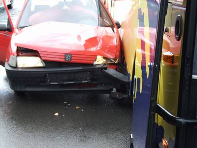 Ter hoogte van de brandweerkazerne vond rond 13:00 uur een aanrijding plaats tussen een personenvervoersbus en een personenauto. |