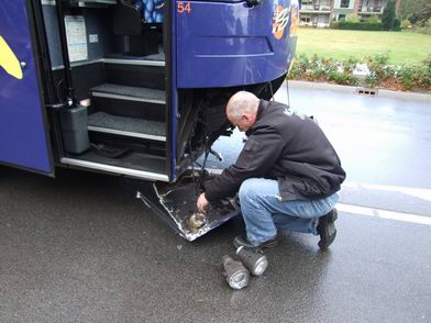 | Alle betrokkenen kwamen met de schrik vrij. De kinderen in de bus, die onderweg waren naar de zwemles, zijn met vervangend vervoer naar het zwembad gebracht. Een servicewagen van Sickman was snel ter plaatse om de bus te repareren. |