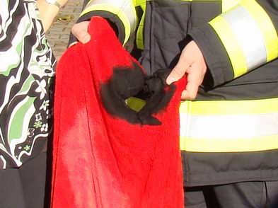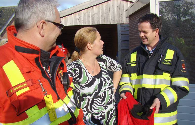 | Resoluut pakte ze het brandende textiel, snelde er mee naar buiten en meldde dit aan de centralist. Die liet echter voor alle zekerheid de voor binnenbrand gealarmeerde brandweerwagens uit Gramsbergen en Hardenberg doorrijden. Gelukkig bleek met het verwijderen van de brandende handdoek het gevaar geweken. De schade bleef nu beperkt tot een vernielde rode handdoek. |