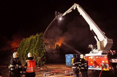 | Even voor twee uur werd er alarm geslagen voor de blusgroepen van Slagharen en de Krim en de hoogwerker van de Hardenberger brandweer. Er werd direkt " middelbrand"-alarm gegeven in verband met een brand in een veeschuur achter een boerderij aan de Parallelweg in de Krim. Door zeer snel ingrijpen konden de ergste vlammen in zeer korte tijd worden gedoofd, maar het nablussen nam nog vele uren in beslag. Kort na de eerste melding werden ook brandweerlieden uit Gramsbergen en Hardenberg ingezet. Er werd tegen half drie zelfs opgeschaald tot "zeer grote brand". Weliswaar konden de zestig koeien, die in de schuur stonden, bijtijds in veiligheid worden gebracht, maar twee en twintig dieren moesten wegens brandwonden uit hun lijden worden verlost. Eén koe beviel in het weiland tijdens de brand. Naar verluidt is de brand ontstaan in hooi, dat in het voorste gedeelte van de schuur lag opgeslagen. |