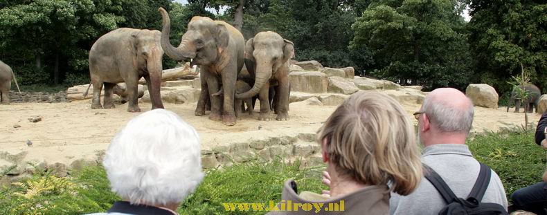 Het was een hele verrassing voor de medewerkers en bezoekers van de Emmer dierentuin, toen daar vanmorgen om 11:30 uur in de buitenlucht een olifantje werd geboren. Dat moeder Mingalar Oo zwanger was, was bekend, maar dat ze zo snel zou bevallen had niemand verwacht. Het was de negenentiende olifantenbaby, die in het Emmer dierenpark werd geboren, was het voor het eerst, dat een olifantje buiten het levenslicht zag. Inmiddels weet dierenverzorger Wybren Landman al, dat het een mannetje is. Hoe het olifantje gaat heten, wordt met de ambassade van Birma - het land, waar deze groep olifanten vandaag komt- overlegd. Landman laat weten dat, als ze de geboorte aan hadden zien komen, ze de groep olifanten niet naar buiten hadden laten gaan. |