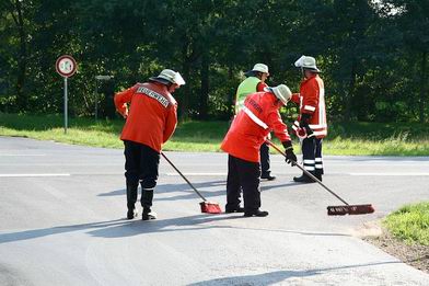 | Vanmiddag rukte de plaatselijke brandweer van Ringe-Neugnadenfeld rond 17:06 uur uit om het wegdek van de Feldweg en de Blickdiek tot aan de Höftestrasse te reinigen van een circa drie kilometer lang spoor van kunstmest, dat een boer tijdens een rit verloren had. |