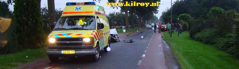 | Wonder boven wonder liep alleen de passagier in de Mercedes borstletsel -gekneusde ribben?- op. Hij is per ambulance afgevoerd. De materiële schade was aanzienlijk: de weg lag bezaaid met wrakstukken en er moest flink wat geveegd en ontvet worden voor het verkeer weer van de kruising gebruik kon maken. Berger Autax haalde de beschadigde voertuigen op met twee bergingsauto's. |