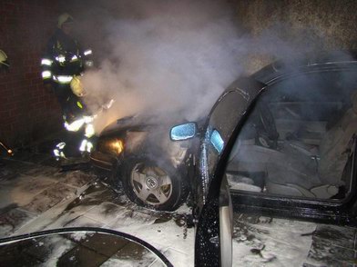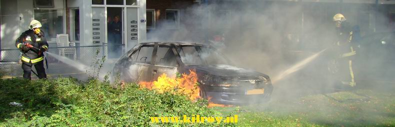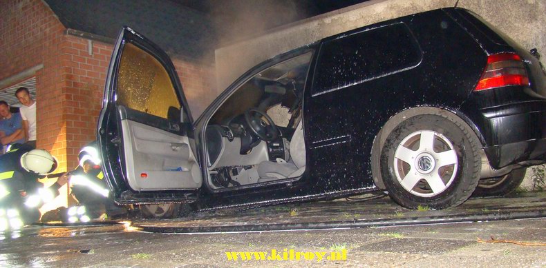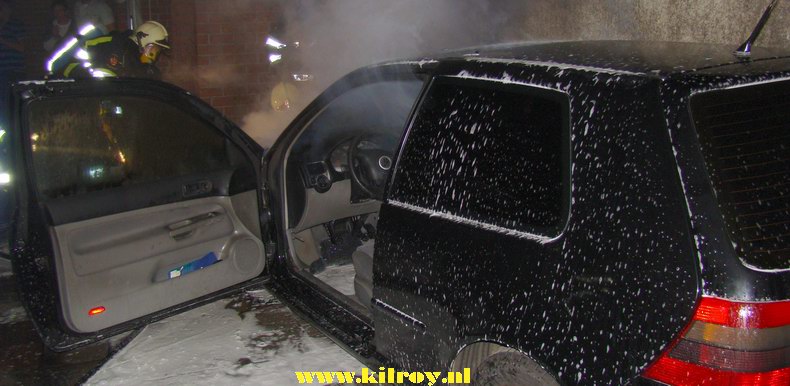 Toen hij rond 22:15 uur naar de koelkast liep om bier op te halen, kreeg hij te horen, dat zijn auto -een VW Golf TDi uit 1998- in brand stond. De voorzijde van de auto, die achter de woning geparkeerd stond, bleek inderdaad in lichterlaaie te staan. Doordat de parkeerplaats een eind van de straat lag, was de brand voor de brandweer moeilijk bereikbaar. De voorzijde van de Golf brandde weliswaar grotendeels uit, maar met een flinke hoeveelheid schuim kon overslag naar nabije bebouwing wel worden voorkomen. De motorkap moest worden opengebroken om de brand in de motor te kunnen blussen. De oorzaak van de brand is nog niet bekend. |