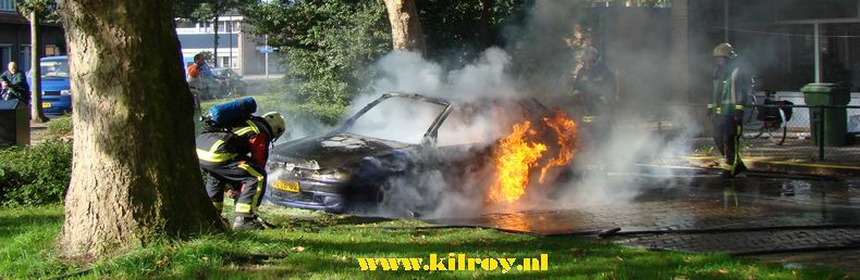 | Vanmorgen tegen negen uur ontdekte de bestuurster van een Peugeot 306 personenauto, dat er brand uitbrak in haar voertuig. De vrouw had net haar auto voor de flat aan de Calkoenstraat, waar ze woont, geparkeerd, nadat ze een bezoek aan de dierenarts had gebracht. De vrouw stapte uit, bracht haar hond in veiligheid en probeerde de vlammen vervolgens met wat water te blussen, hetgeen mislukte. |