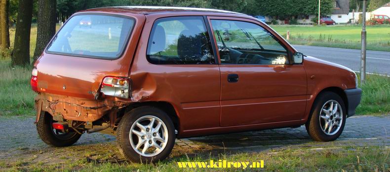 | De bejaarde bestuurder van een Suzuki Alto stak even na zessen vanaf de Ridderinkweg in noordelijke richting de N34 over. De man, die sinds eergisteren over de auto beschikte, zag een in de richting van Ommen rijdende Poolse Daewoo Eleganza niet aankomen. Gelukkig raakten de auto's elkaar niet vol en bleef -voor zover bekend- ernstig letsel uit. Hulp van de Ommer brandweer bleek niet nodig. De Alto werd door de tik wel 180 graden gedraaid en kwam achterstevoren op de oversteek tot stilstand. |