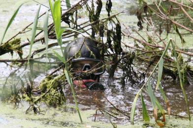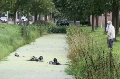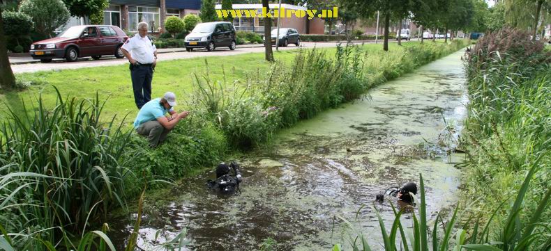 | Drie duikers van de politie hebben zaterdagmiddag een zoektocht gehouden in de sloot naast de Boekweitlaan. Het vuurwapen, dat is gebruikt bij de dodelijke schietpartij in de nacht van donderdag op vrijdag, is -voor zover ons bekend- niet gevonden. "Het zoeken moet op de tast gebeuren, want zicht is er nagenoeg niet en gewoel in de drabbige bodem maakt het alleen nog moeilijker", zo gaf één van de duikers aan. Maar, zoals hij zei: “We behalen goede resultaten en als we niets vinden, kunnen we de garantie geven, dat er ook niets ligt. |