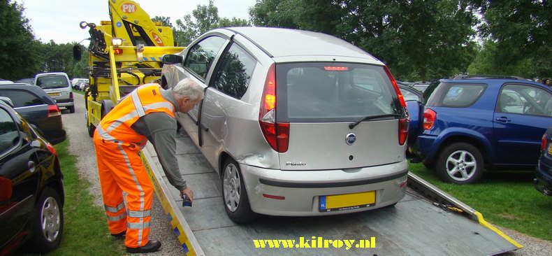 | De als eerste aangereden Fiat Punto is mogelijk door de aard van de schade zelfs total loss. Berger Autax moest twee van de drie auto's ophalen en kreeg daarbij hulp van de groep Attractieparkbezoekers. |