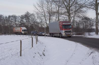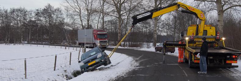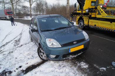| Ook vandaag bleven ongevallen door gladheid niet uit, hoewel voor zover bekend niemand letsel opliep. Vanmiddag tegen vieren reed een inwoner van Dedemsvaart met zijn Ford Fiesta over de Noord Stegeren richting Dedemsvaart. In de bocht nabij de N377 moest hij uitwijken voor een tegenligger en kwam daarbij met de rechter wielen in de zachte, besneeuwde berm. Tot zijn frustratie moest hij lijdzaam toezien, hoe z'n auto weggleed en de droge sloot in kantelde. Gelukkig was de snelheid laag en bleek, nadat berger Jan van de firma Autax de auto vakkundig op het asfalt had teruggezet, dat er op het eerste gezicht weinig tot geen schade te bekennen was. De beginnend bestuurder kwam met de schrik vrij. |