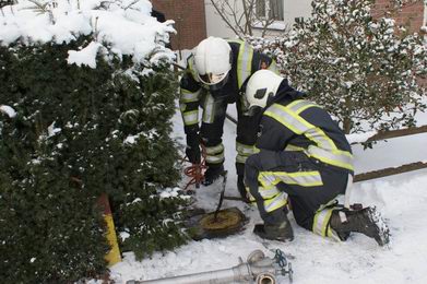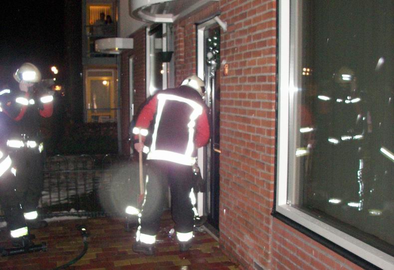 | De brandweer constateerde, dat er inderdaad iets aan de hand was en forceerde de deur. In de woonkamer had de houten vloer vlam gevat door een kaars in een kerststukje, dat op de grond stond. De nog smeulende resten werden door de brandweer verwijderd. |