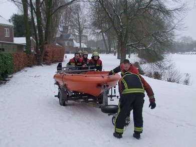 | Genoeg reden voor verontrusting. De meldkamer stuurde politie, ambulance en de Coevorder brandweer -inclusief de duikgroep en een boot- naar de plaats des onheils. De brandweerduikers onderzochten het water, maar vonden geen slachtoffer. Nadat men er van overtuigd was, dat er geen reden was voor nader onderzoek, toog het gezelschap naar de kazerne aan de Hulsvoorderdijk, waar de koffie al klaar stond. |