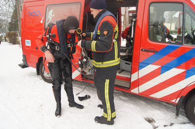 | Coevorden: duikgroep onderzoekt wak in vijver na alarmmelding |