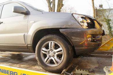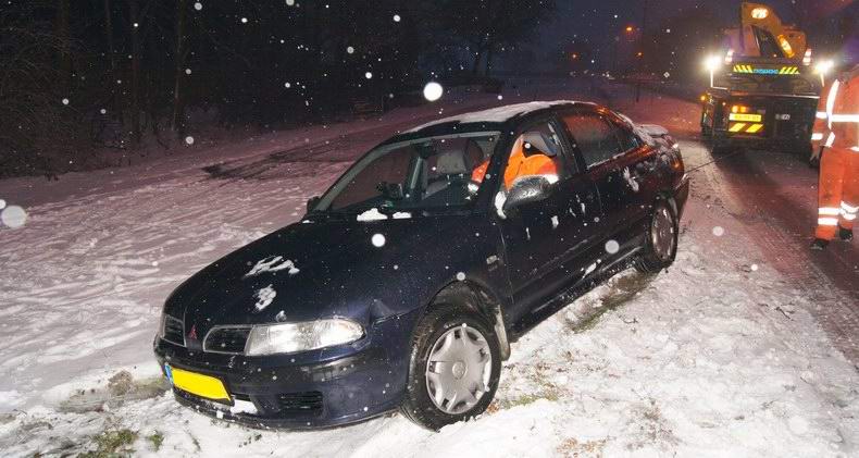 | Berger Autax lierde de Mitsubishi Carisma uit de berm, waarna bleek, dat het voertuig geen ernstig schade opgelopen had en zijn weg zonder hulp van de sleepwagen kon vervolgen. Maar gezien de drukte bij de schadeherstelbedrijven kan het nog wel even duren, voordat de beschadigde onderdelen vervangen kunnnen worden. De schade aan het wegmeubilair werd -zoals het hoort- aan de wegbeheerder doorgegeven. |