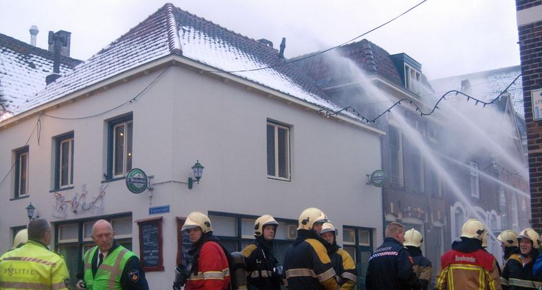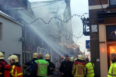 | Ook de bovenliggende appartementen brandden uit, maar de bewoners konden in veiligheid worden gebracht. Er vielen geen gewonden. De brandweer kon voorkomen, dat het vuur zich naar andere panden in dit dichtbebouwde centrum uitbreidde. Het nabluswerk zal zeker nog een deel van de avond in beslag nemen. |