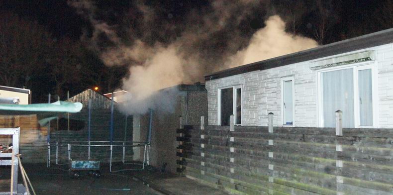 | Even voor zeven uur vanavond kreeg de brandweer van Coevorden opdracht, naar de Tjasker in Dalen te rijden, waar volgens de melding een schuur of garagebox in brand zou staan. Het bleek te gaan om een betonnen bijgebouwtje met sanitaire voorzieningen, witgoed en berging achter een stacaravan op het woonwagenkampje. De vlammen hadden inmiddels flink huisgehouden en het gebouwtje brandde uit, maar de brandweer wist overslag naar de overige bebouwing te voorkomen. |