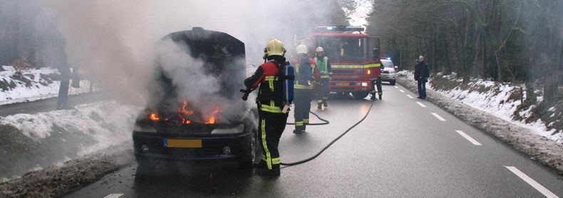 voor een autobrand aan de Donderseweg in Norg. Een Peugeot stationwagen stond van voren in brand. De brandweer, die snel ter plaatse was, heeft het interieur van de negen jaar oude Peugeot 306 Break kunnen redden, maar het motorcompartiment brandde geheel uit, waardoor de auto onherstelbaar beschadigd werd. |