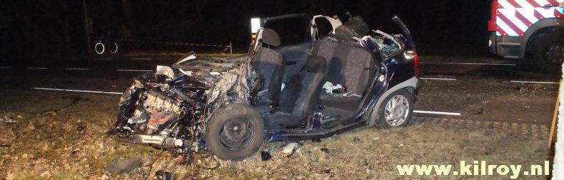| Uit het VOA-onderzoek bleek onder meer, dat de remmen van de auto goed werkten, hoewel het voertuig na de crash duidelijk rijp voor de sloop was. Berger de Jong voerde het wrak af. |