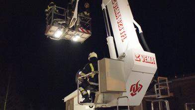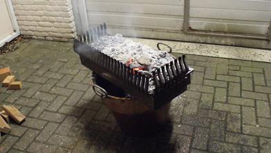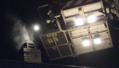 | In afwachting van de hoogwerker haalde men eerst de brandende inhoud uit de kachel en deponeerde die op een veilige plek buiten de woning. Vervolgens kon men vanuit de hoogwerker het rookkanaal vegen, hetgeen met de gebruikelijke rook gepaard ging. Nadat de klus geklaard was, werden de brandweerlieden in de bedrijfskantine beloond met koffie en gebak. |