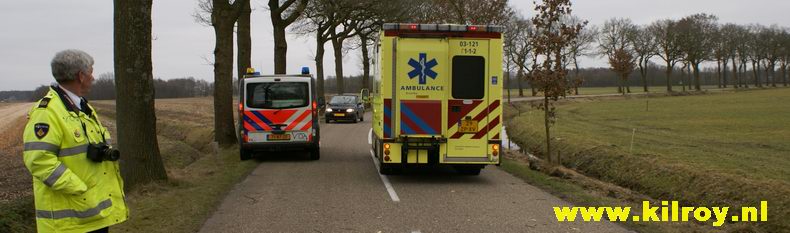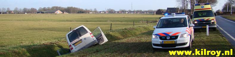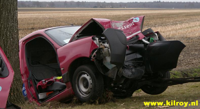 | Een medewerker van energiebedrijf Essent is vanmiddag gewond geraakt bij een eenzijdig ongeval op de Wezuperstraat bij Wezup (Dr). De auto van de man, die richting Orvelte reed, kwam in de bocht voor Bart van Veenweg met de rechterwielen in de berm, waarop de bestuurder met een ruk aan het stuur probeerde, de Citroën Berlingo bedrijfswagen weer in het gareel te krijgen. Dat had echter tot gevolg, dat de auto slipte en frontaal hard tegen een boom klapte. De bestuurder liep hierdoor o.a. een gecompliceerde bovenbeenfractuur op. De man werd door de brandweer uit zijn auto geholpen, waarbij de rugleuning van de passagiersstoel en het portier aan de passagierszijde weggenipt werden. De man werd per ambulance naar een ziekenhuis vervoerd. |
