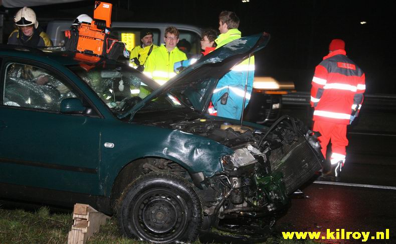 | De bestuurder en de vrouw konden de auto zelf verlaten. De opgetrommelde brandweer heeft het tweetal tegen het talud op geholpen, zodat ze in de ambulance konden worden behandeld . De twee zijn naar een ziekenhuis overgebracht. |