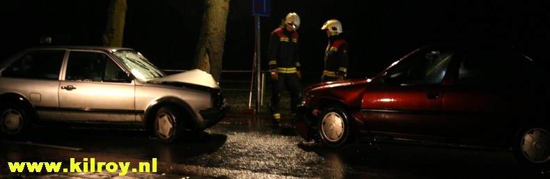 | Twee gewonden en twee zwaar beschadigde personenauto's. Dat was de balans van een kop-staart-aanrijding, die zich rond haf zes vanavond voordeed op de Emmer Rondweg op zo'n 500 meter voor de afslag Nijbracht. De bestuurder van een Subaru Legacy reed richting N34, toen hij te laat ontdekte, dat er een Fiat Sedici op zijn rijstrook stilstond. Bij de daarop volgende kop-staart-aanrijding schoot de nog geen één maand oude Fiat van het talud en kwam enkele meters lager tot stilstand. |