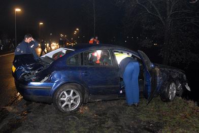 | Klazienaveen: auto tuimelt van talud: twee gewonden |