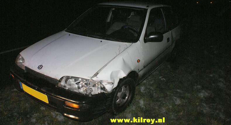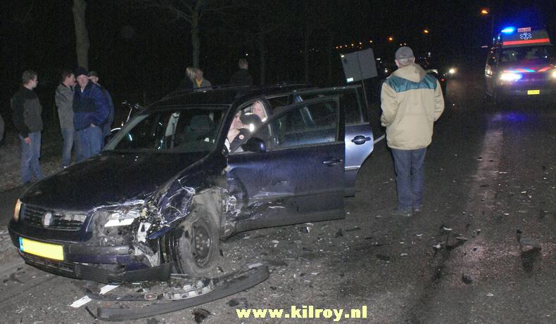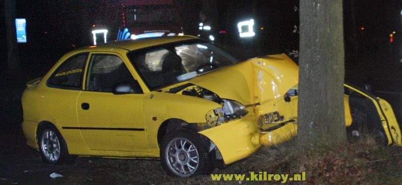 | Een jonge automobiliste is vanavond gewond geraakt, toen ze -onderweg naar haar vriend in Tweede Exloërmond- op de Oude Dijk tussen Exloo en Tweede Exloërmond in de S-bocht bij de Boermastreek de macht over het stuur verloor. Haar Renault Clio slipte en klapte ter hoogte van het linker voorwiel hard tegen een boom aan de rechterkant van de weg, waarbij het motorblok uit de auto losscheurde. Hierna kwam de auto totaal vernield midden op de weg tot stilstand. De brandweer van Tweede Exloërmond, voor wie vanavond om acht uur de nieuwjaarsreceptie met de collega's uit Borger op het programma stond, kreeg de opdracht tot hulpverlening op haar bordje. |