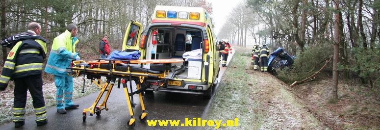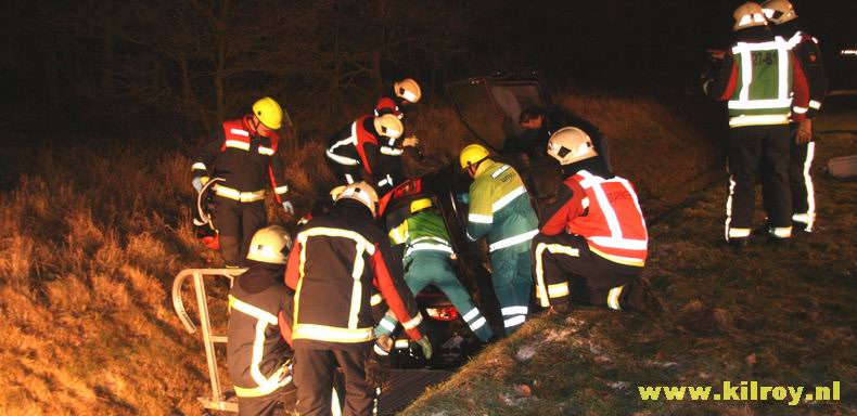 | Een proefritje met een VW Transporter ging vanmorgen rond 11:30 uur op de Middenweg in Arriën goed fout. De auto gleed door gladheid weg en raakte zwaar beschadigd, toen de auto ondersteboven in een sloot en tegen een boom belandde De bestuurder/reparateur was weliswaar zonder hulp uit de auto gekropen, maar bleek bij medische controle door de klap tegen het stuur een gescheurde milt opgelopen te hebben. De man is per ambulance naar een ziekenhuis vervoerd, waar hij even later geopereerd werd. |