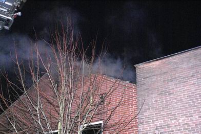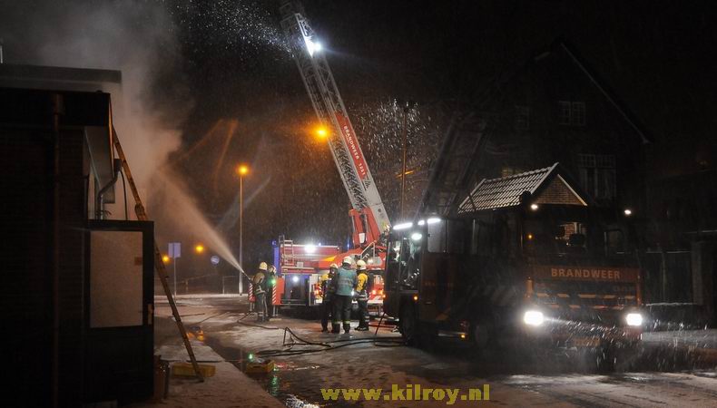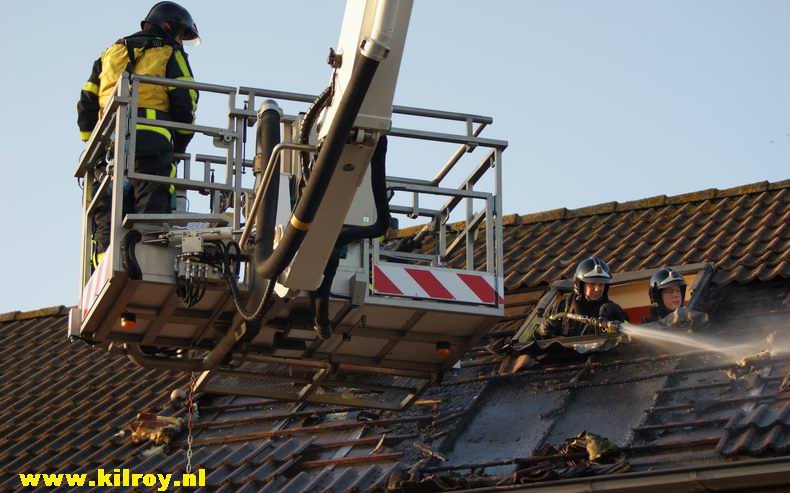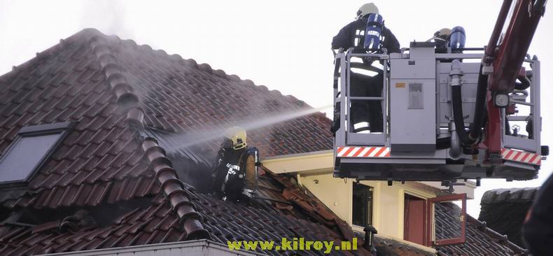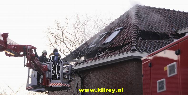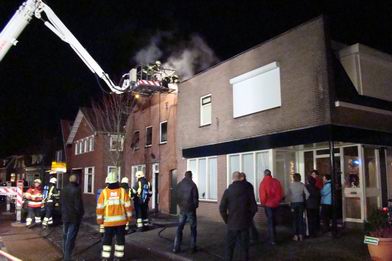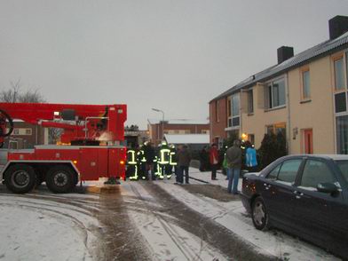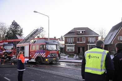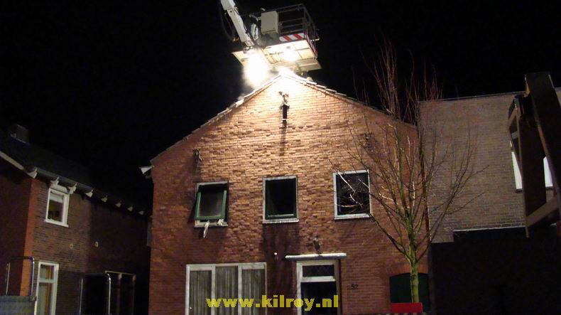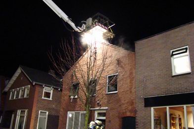 | Uit het dakbeschot bleef er ook geruime tijd, nadat men het vuur meester was, nog rook uit het dak komen, daar de vlammen zich een weg naar het dakbeschot gevreten hadden en zich onder de pannen hadden genesteld. De hoogwerker moest worden ingezet om deze hardnekkige brandhaardjes te kunnen doven en pas tegen 00:30 uur verdween de laatste rook. Het vuur was ontstaan door een oververhitte wasdroger op de eerste verdieping. De bewoners -een ouder echtpaar- konden bij de buren van de schrik bekomen. Een employee van de Stichting Salvage zorgt voor de eerste voorzieningen en de opvang. |