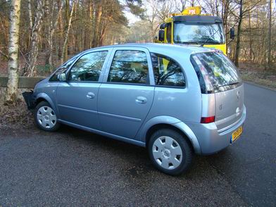 | De geplande koffievisite bij een vriendin op bungalowpark het Reggewold in Vilsteren liep voor een inwoner van het Groningse Kropswolde anders af dan verwacht. De man reed over de Oude Hammerweg richting de N348 en wilde linksaf de entree van het bungalowpark in rijden, toen de weg ter plaatse spekglad bleek te zijn. De Opel Meriva reageerde niet meer op stuurbewegingen en gleed langzaam, maar zeker op een berkje af, dat het voertuig meedogenloos stuitte. De airbags gingen weliswaar door de lage snelheid niet af, maar de bestuurder liep wel een pijnlijke knie aan de confrontatie over. Medische hulp leek echter niet nodig. |
