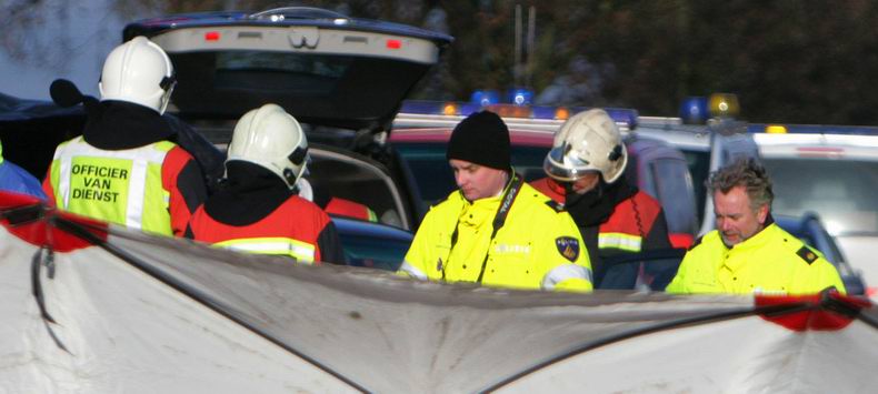 | Een verkeersongevalsanalist van de Regiopolitie Drenthe legde de omstandigheden rond het voorval vast. Of het incident het gevolg was van een onwelwording of de deze avond heersende plaatselijke gladheid is niet duidelijk. De politie-persvoorlichter gaf korte tijd later door, dat het slachtoffer, een 47-jarige inwoner van Klazienaveen, overleden is. |
