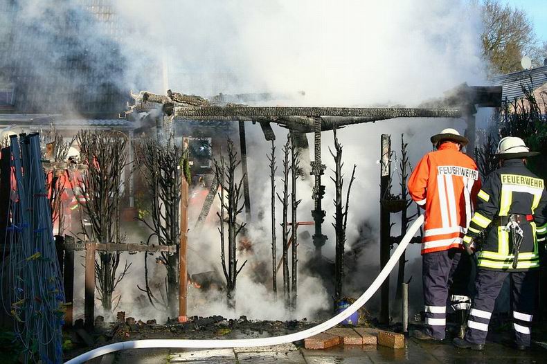 | Tegen half twaalf vanmorgen werd de plaatselijke brandweer van Emlichheim opgeroepen met een zogeheten B3-alarm vanwege een brand in een tuinhuis, annex gereedschapsberging en houtopslag bij een woning aan de Erlenstraße. |