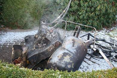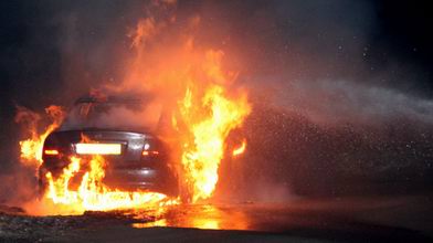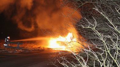 | Omdat er een LPG-tank in de auto zat, moest de brand met de nodige voorzichtigheid worden bestreden In oudere typen auto's met een LPG-installatie ontstaat vaak brand, omdat na langdurig uitsluitend op LPG rijden de pakkingen in de brandstoftoevoer uitdrogen en na omschakeling van LPG naar benzine brandstof weglekt en verdampt op de hete motor. Of dat hier het geval was, is niet bekend. |