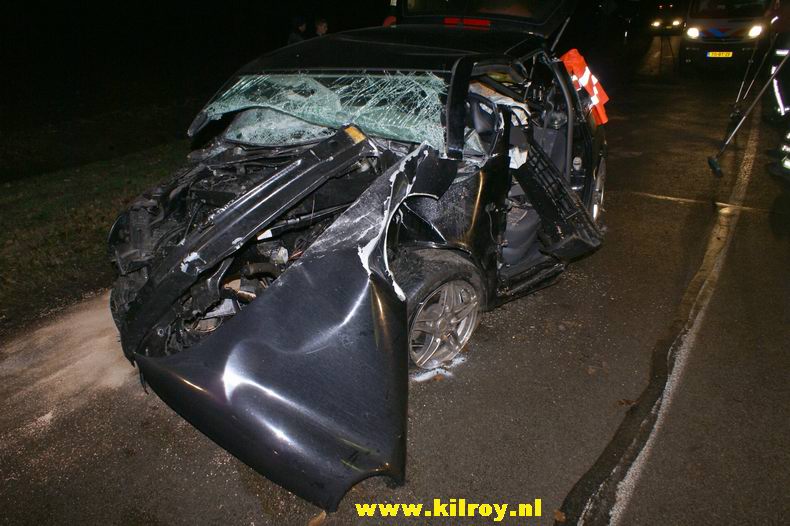 Nieuwjaarsdag werd de Zwolse brandweer gealarmeerd vanwege een "ongeval letsel". Op de IJsselallee was de bestuurder van een Porsche 911 Turbo de macht over het stuur verloren, waarop de wagen hard op een lichtmast en hierna nog tegen een boom botste. De vier inzittenden (de bestuurder en drie kinderen) werden overgebracht naar het ziekenhuis. Volgens een getuige vielen hun verwondingen mee en konden de inzittenden zelf uit de totaal vernielde heilige koe stappen. |