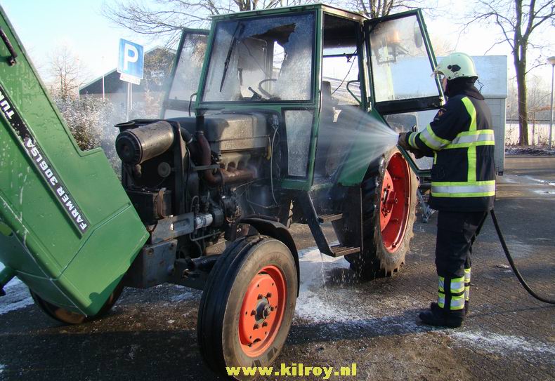 | Een Fendt trekker van een paardenhouder uit Collendoorn is vanmorgen tegen elven uitgebrand op de parkeerplaats van Sportpark de Boshoek in Hardenberg. De man had net een aantal paarden naar manege "de Guldenspoor" gebracht, toen een voorbijganger hem waarschuwde, dat zijn tractor in brand stond. |