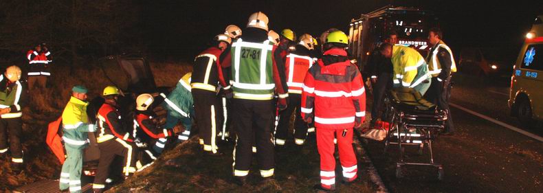 | Direkt daarop vloog er nog een witte Suzuki Swift tegen de vangrail, waarna de auto dwars over de weg tot stilstand kwam. Deze Swift werd door voorbijgangers naar een veiliger plek geduwd. Voordat men de bestuurder van een met hoge snelheid naderende BMW kon waarschuwen, gleed ook dit voertuig van het asfalt en maakte drie koprollen, alvorens een meter of tien lager ondersteboven tot stilstand te komen. Wonder boven wonder overleefden de twee Chinese mannen in deze auto het ongeval zonder kleerscheuren, net als de Suzuki-bestuurster. Ze werden door omstanders uit de BMW geholpen. De ernstig beschadigde auto's werden weggesleept door berger de Jong. De politie had de handen vol aan deze en aanverwante ongevallen, vooral in Zuid-Oost-Drenthe. Maar naar verluidt waren kort na bovenstaand ongeval ook op de N36 tussen Beerzerveld en Vroomhoop volgens de melding vijf auto's betrokken bij een ongeval door gladheid. Het bleek echter slechts om twee auto's te gaan, hoewel de weg één grote ijsbaan was. Hier kwam berger Autax in actie. |