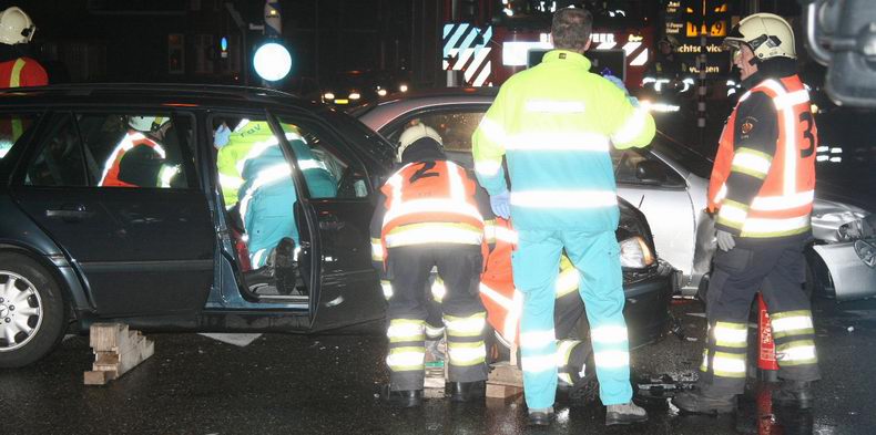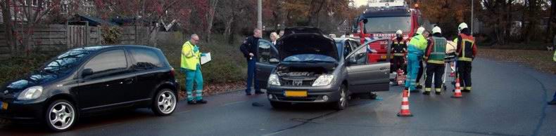 | Net nadat in het weekend een ongeval was gebeurd op de Stationsweg, was het er woensdagavond weer raak; ditmaal op de Vechtbrug, waar twee auto's elkaar geraakt hadden op de met verkeerslichten beveiilgde kruising. De bestuurder van een zwarte Mercedes is door brandweer en ambulancepersoneel uit zijn gehaald. De andere bestuurder kwam met de schrik vrij. |